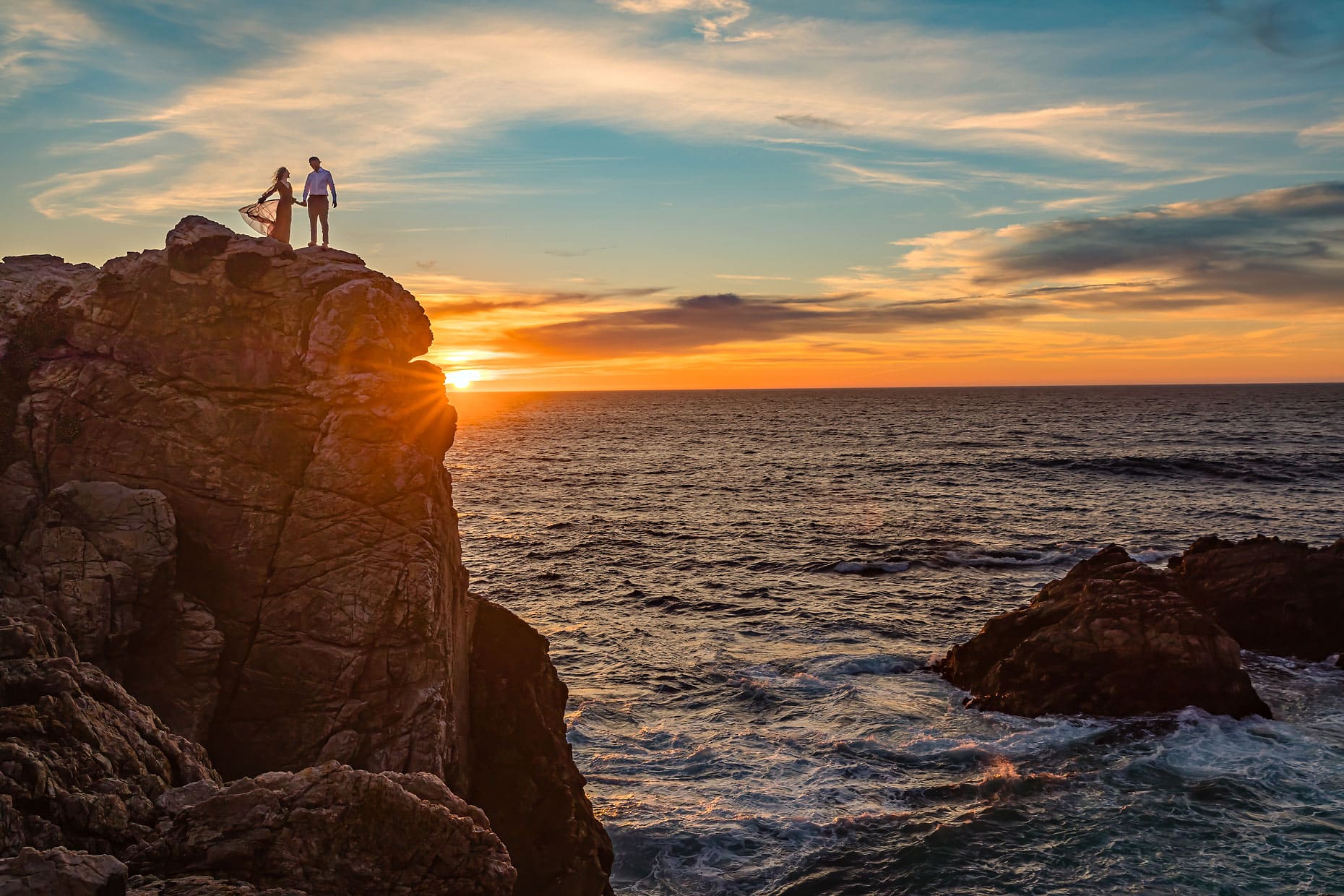 Big Sur stands as a dream destination for elopements and intimate weddings, captivating couples with its ethereal beauty and rugged coastal charm. The dramatic cliffs, sweeping vistas of the Pacific Ocean, and lush redwood forests create a natural cathedral for exchanging vows.