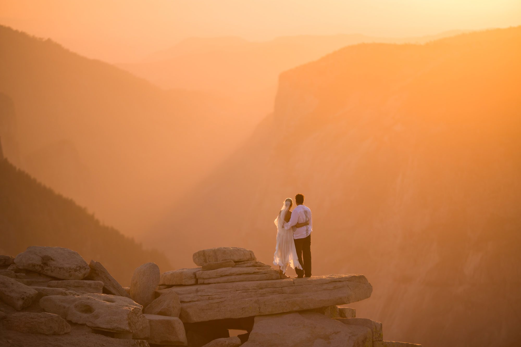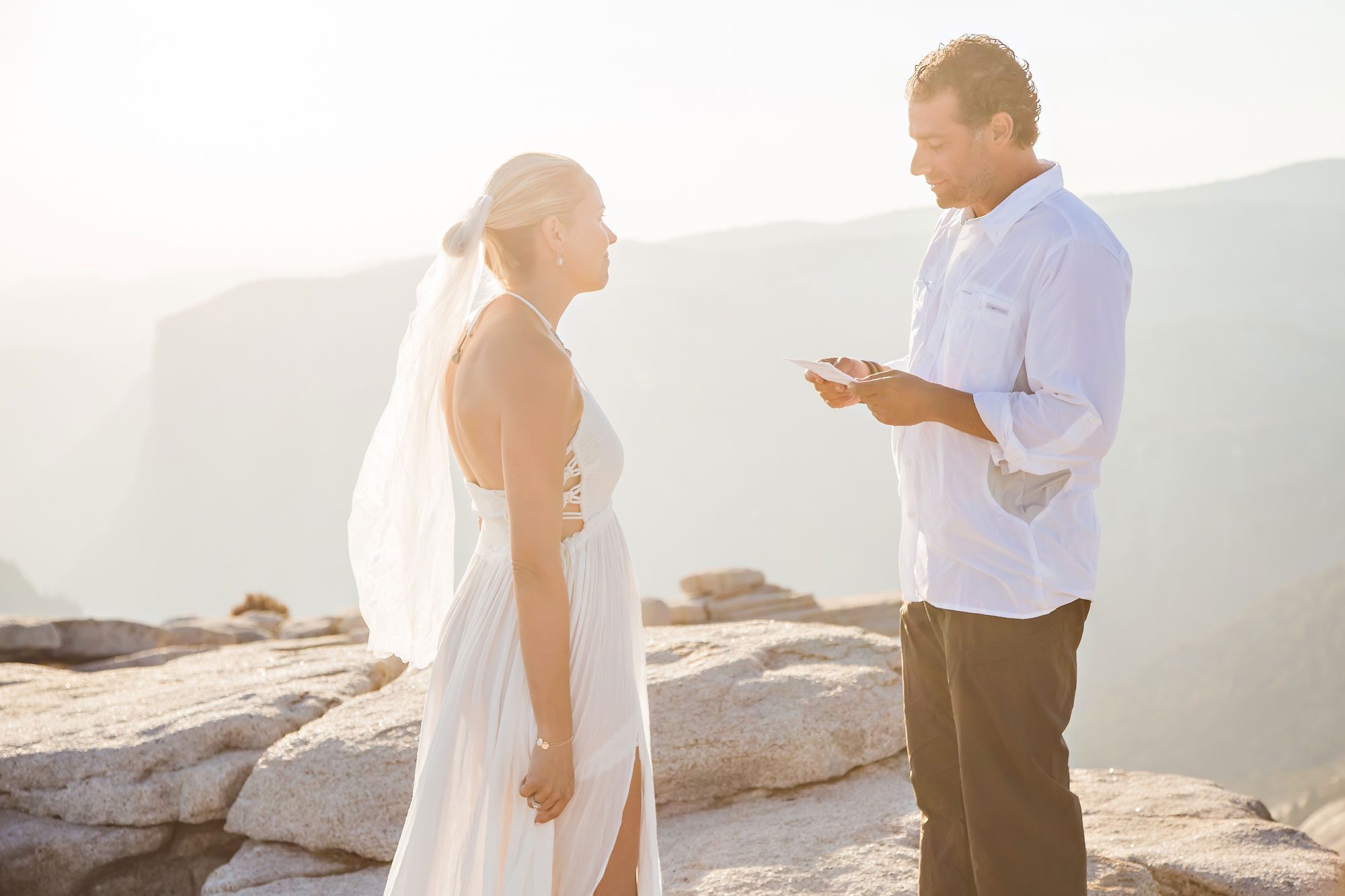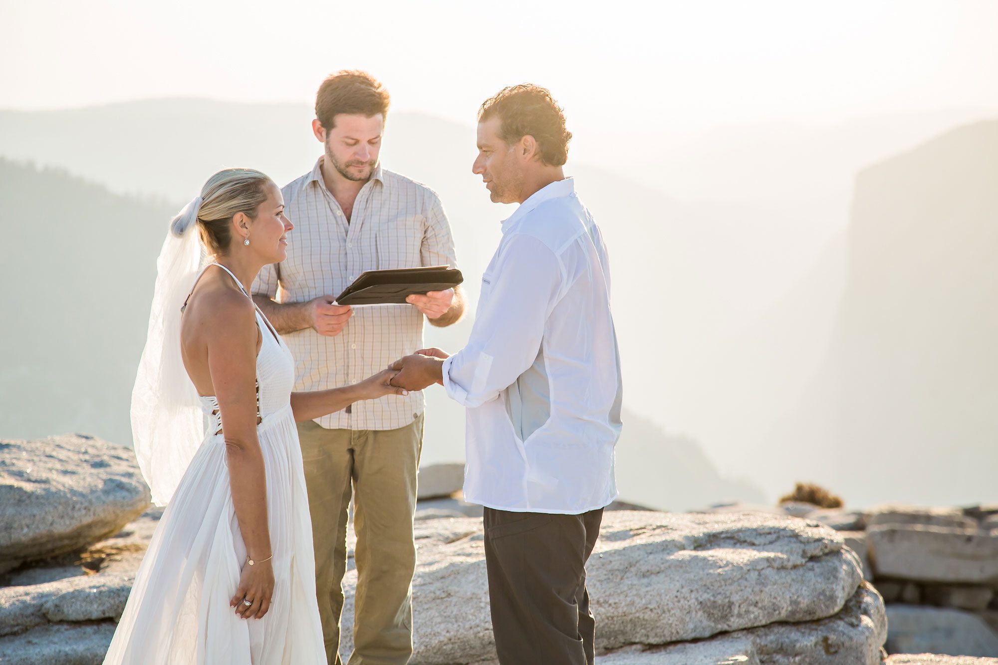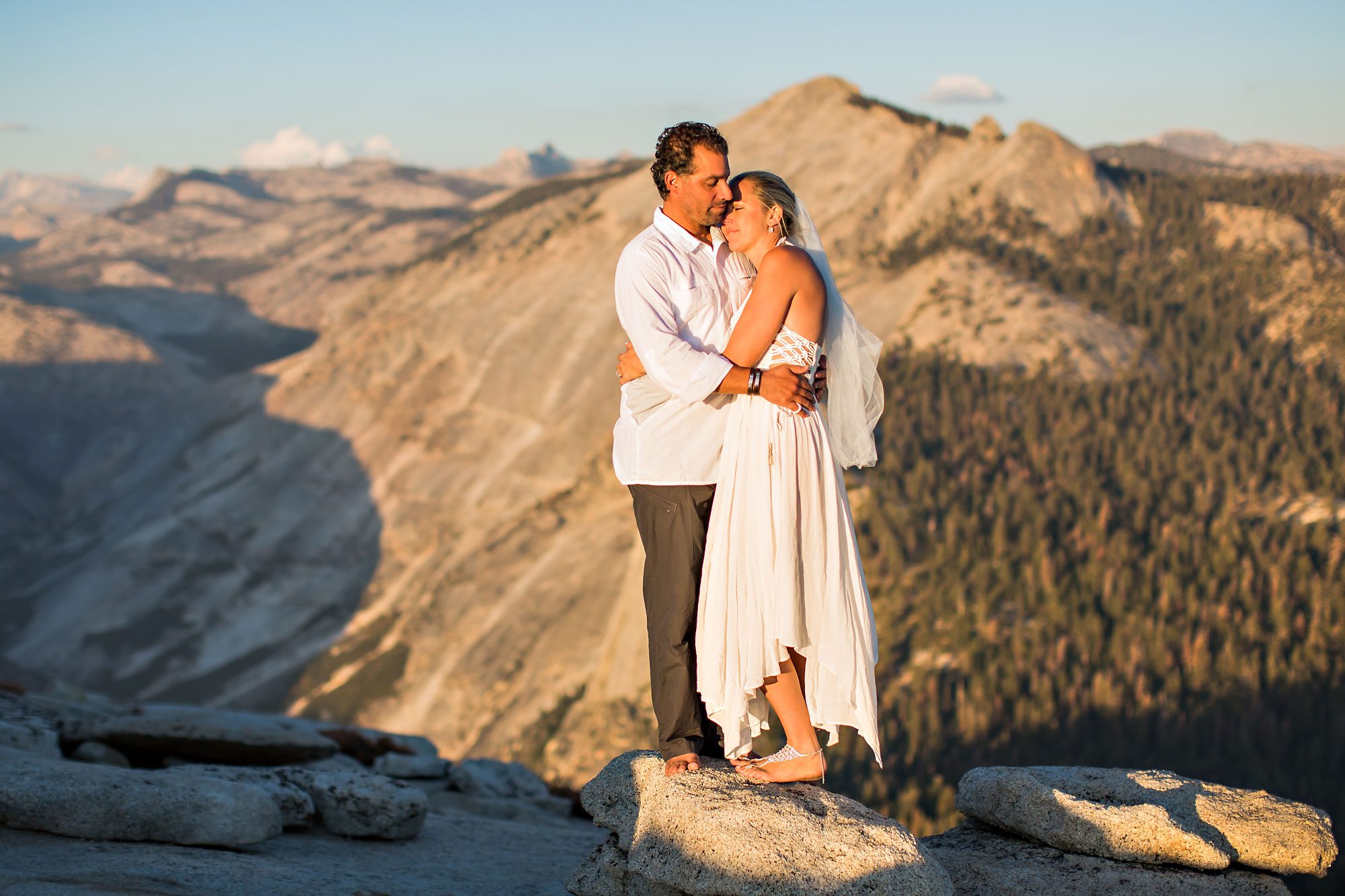 Witnessing the couple’s emotion as they took those final steps to the summit was a truly heartwarming experience. Bathed in the warm hues of the setting sun, their magical wedding ceremony unfolded against the breathtaking backdrop of Yosemite. The natural beauty of the landscape provided an awe-inspiring setting for the exchange of vows, making Yosemite an ideal location for an adventure elopement.