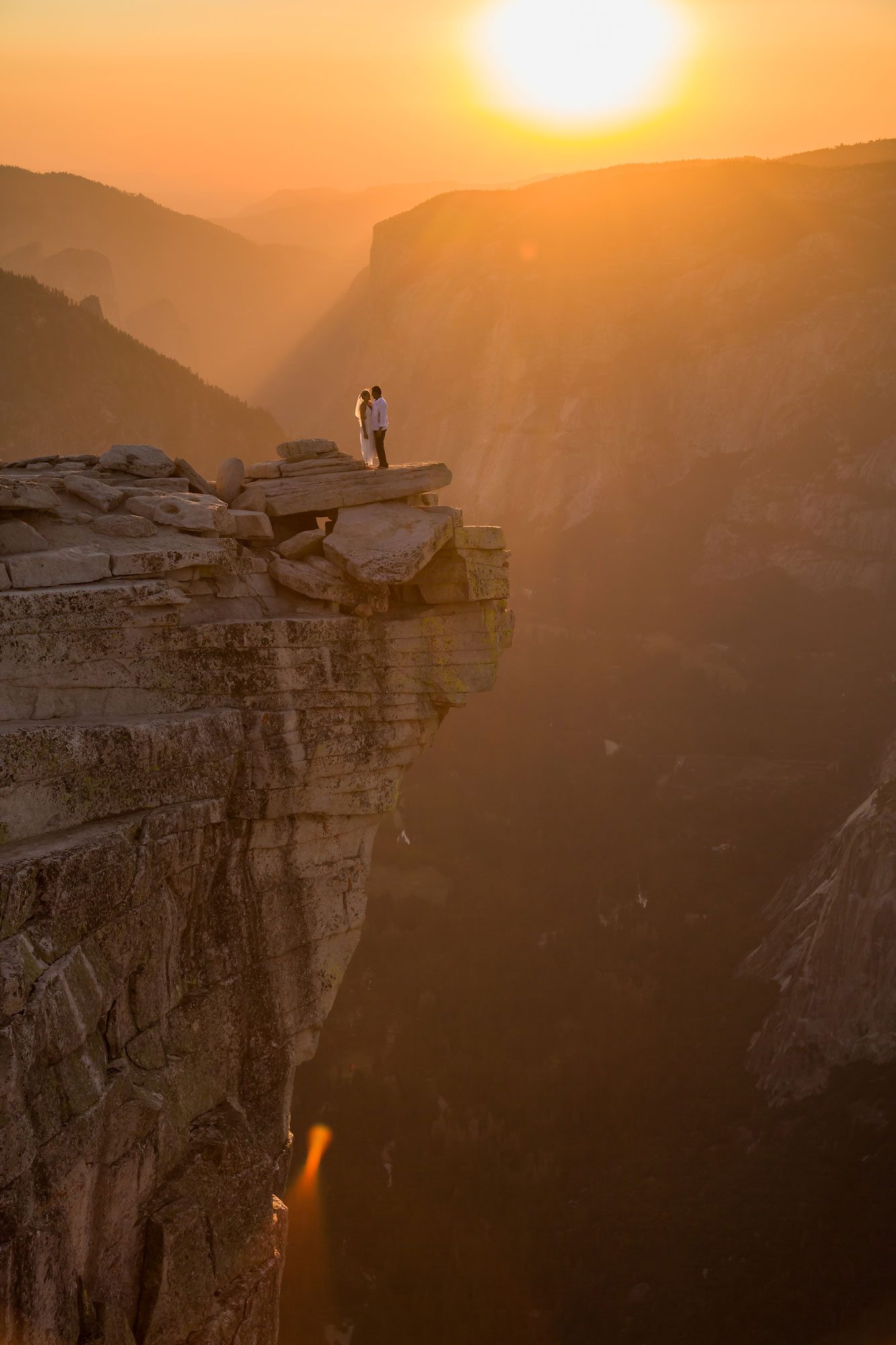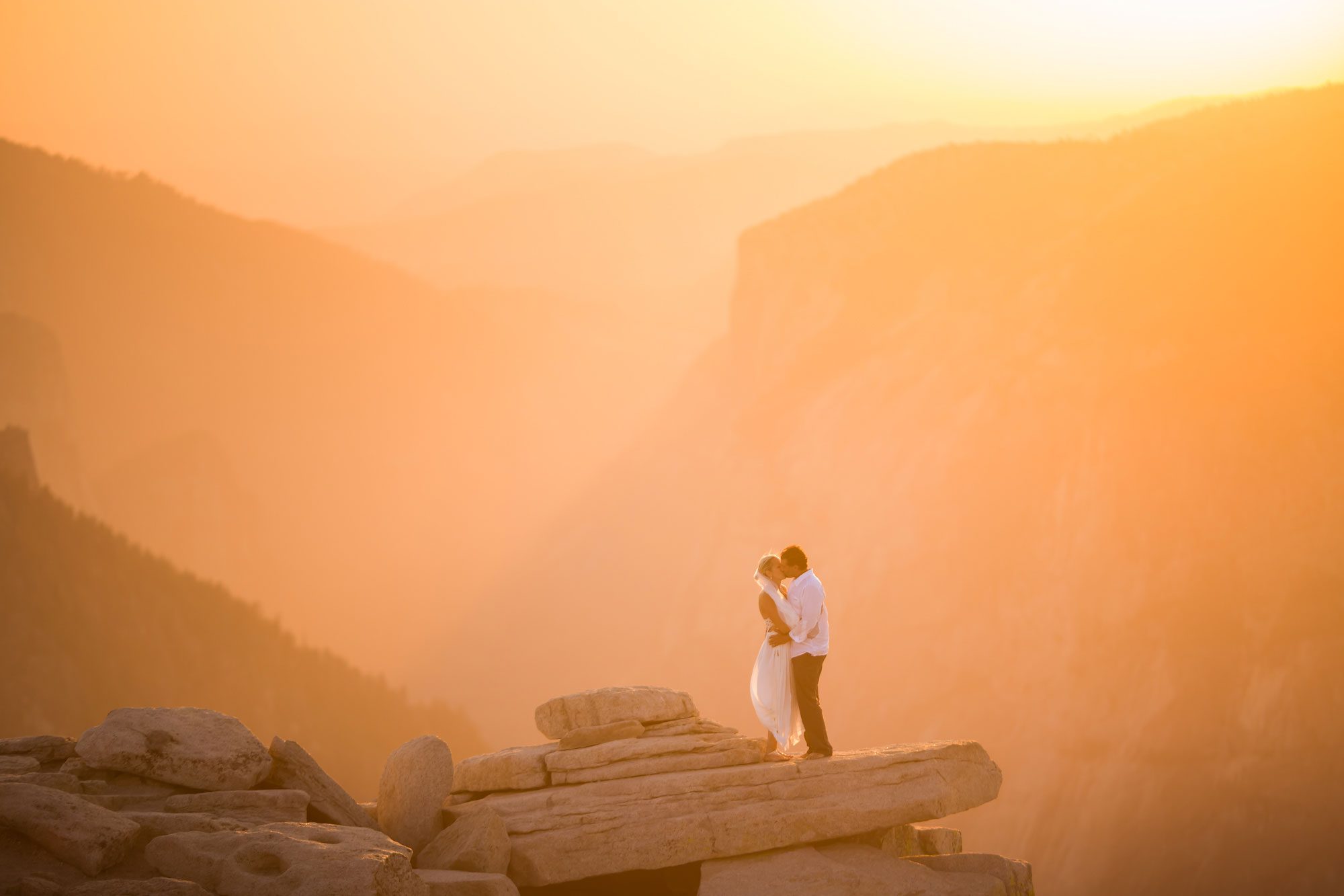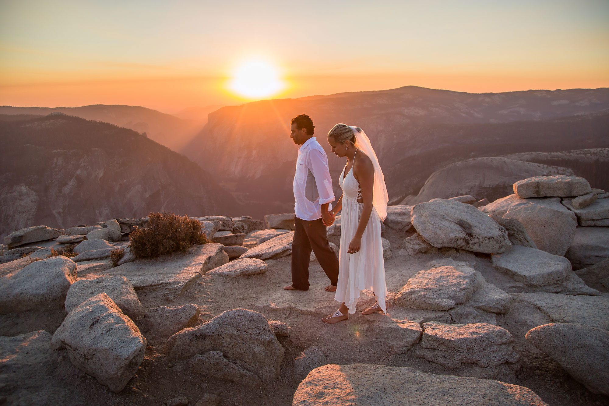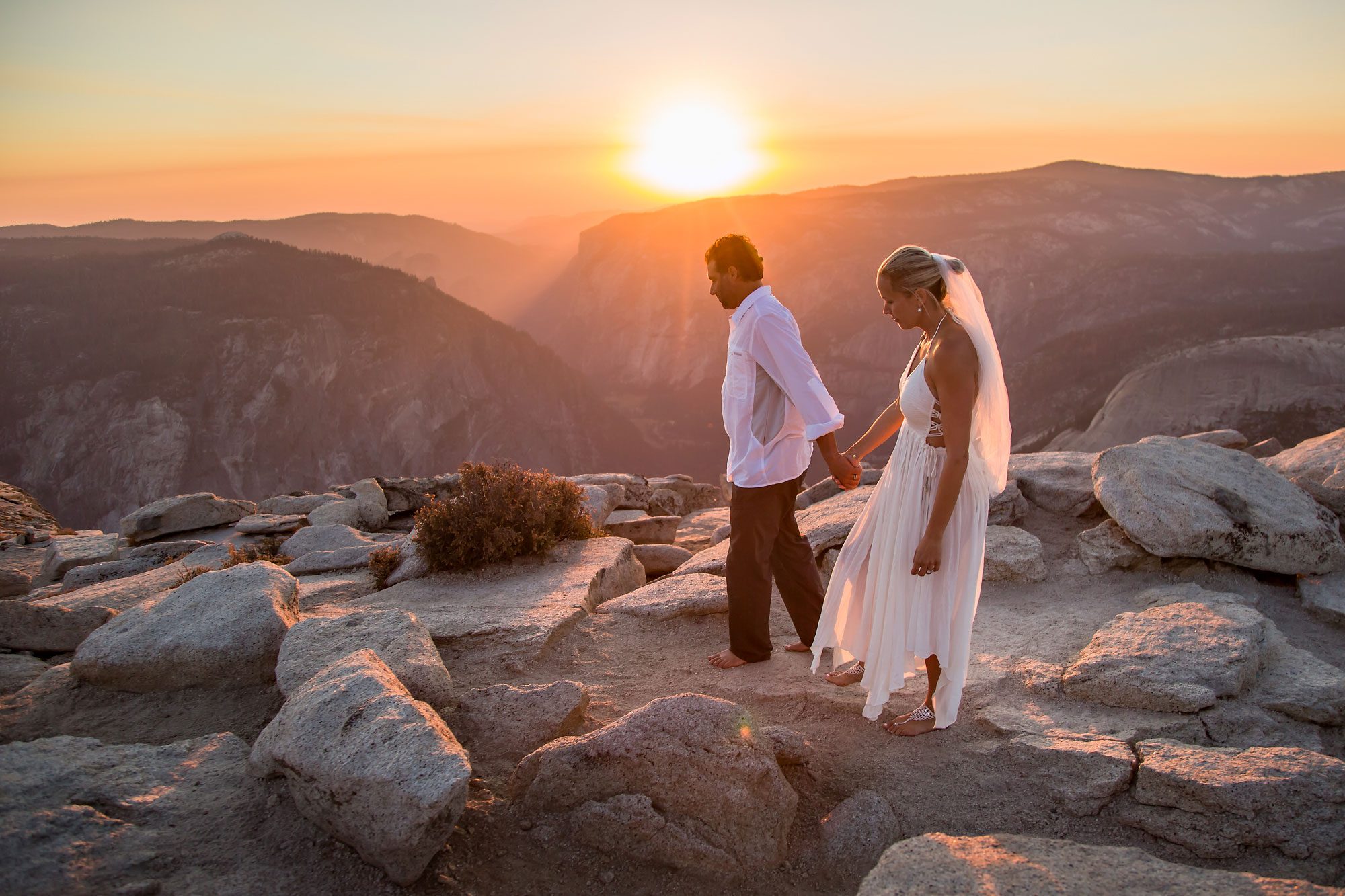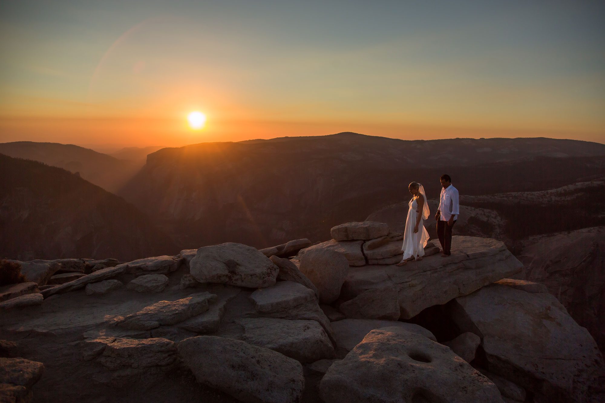 Witnessing the couple’s emotion as they took those final steps to the summit was a truly heartwarming experience. Bathed in the warm hues of the setting sun, their magical wedding ceremony unfolded against the breathtaking backdrop of Yosemite. The natural beauty of the landscape provided an awe-inspiring setting for the exchange of vows, making Yosemite an ideal location for an adventure elopement.